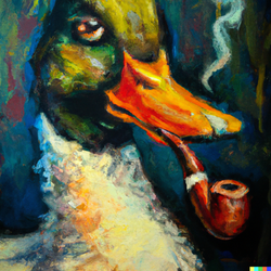 pintura a óleo de Scrooge, meu pato, fumando um charuto