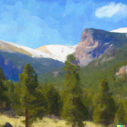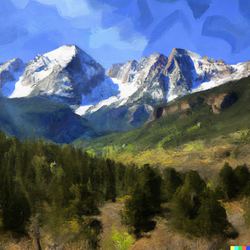 uma bela pintura a óleo das Montanhas Rochosas do Colorado