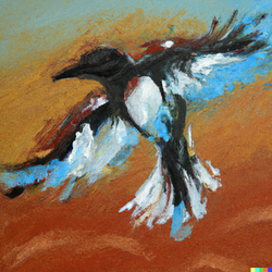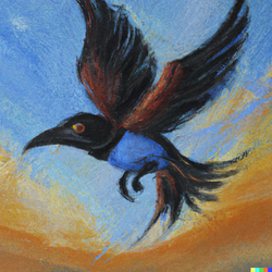 Uma pintura a óleo expressiva de um pássaro colorido voando