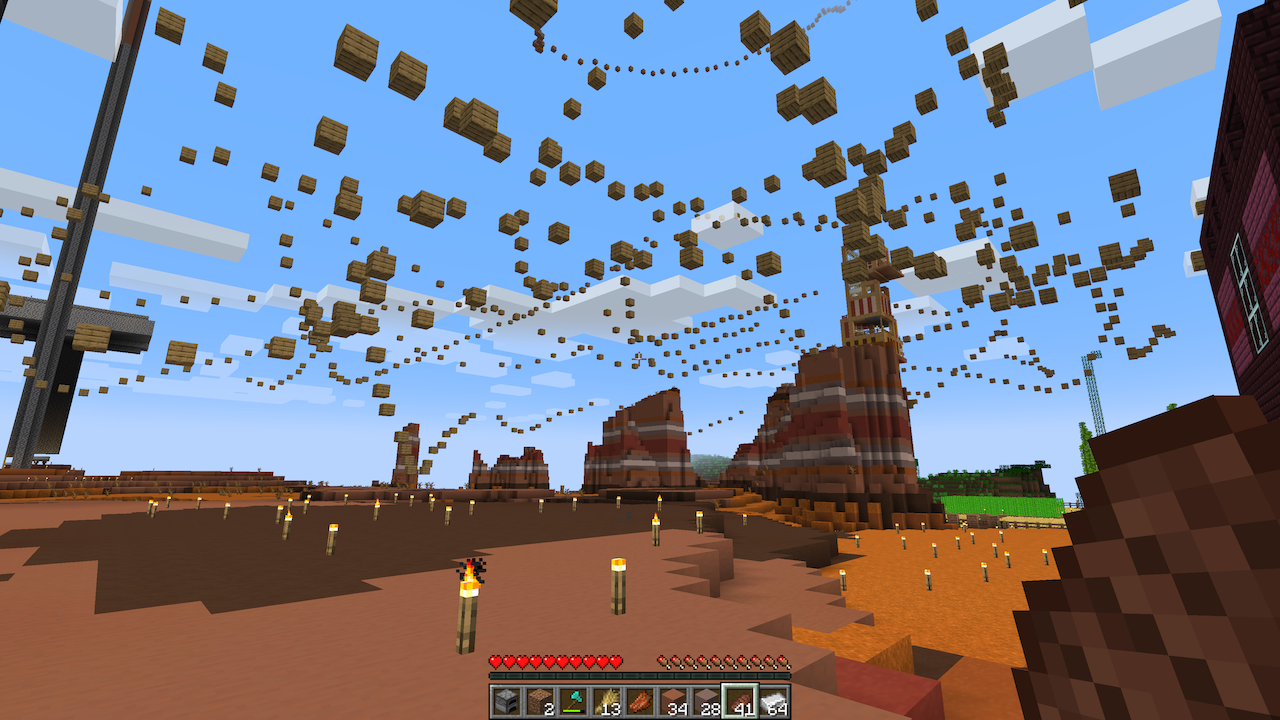 最初,服务器是“开放访问”的,但2021年7月15日的一起事件促使我们转向等候名单系统。黑客“txt_385_787_6969”和“VariableSix7056”使用从常规玩家那里偷来的木材以及黑客客户端漏洞,在天空中刷满了木块。结果如下: